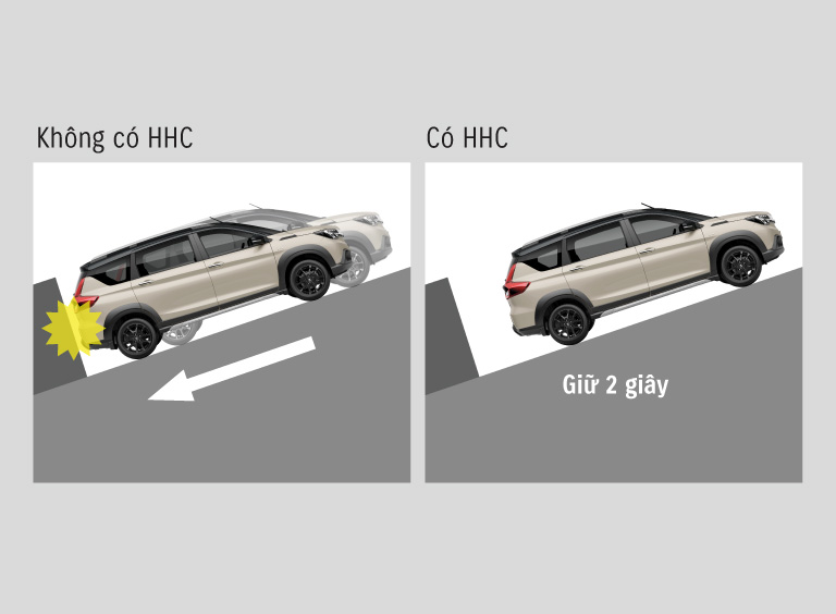 Suzuki XL7 Hybrid hỗ trợ phanh khi chuyển từ bàn đạp phanh sang chân ga trong vòng 2 giây khi khởi hành lên dốc, chống trôi về phía sau, hiệu quả ngay cả trên những con dốc gập ghềnh.