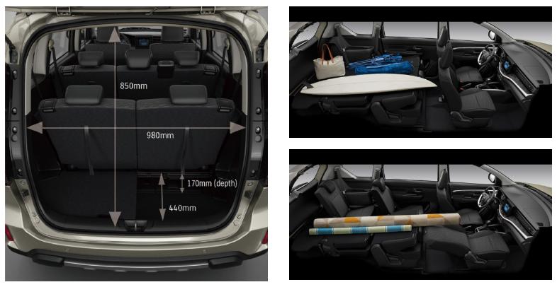 Dung tích tối đa: 803L Khi gập hàng ghế thứ 3 và tháo tấm lót khoang hành lý: 550L.